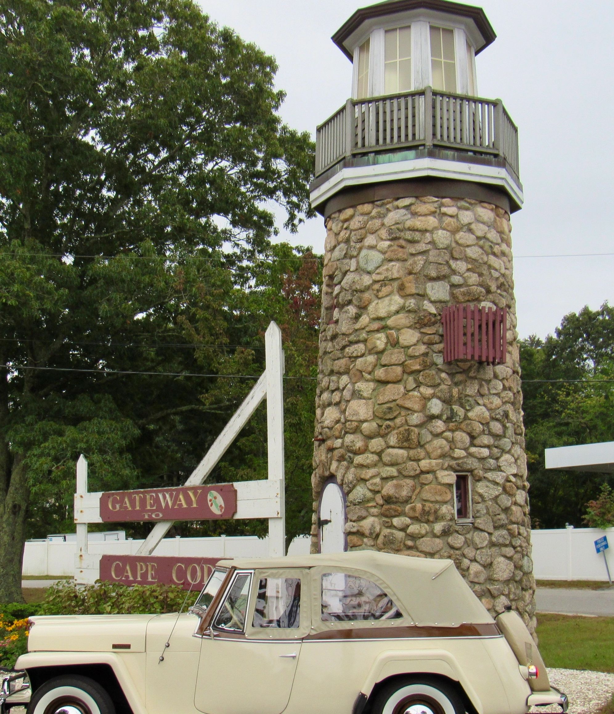Photo to left: WOJC Members Karen & Wendell Keith of Douglas, MA share a photo of their Jeepster at the "Gateway To Cape Cod" lighthouse along rt. 28.